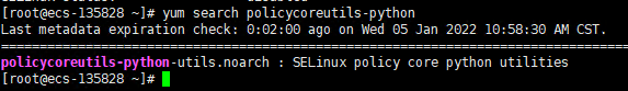 PS:若 policycoreutils-python 未找到,利用yum search policycoreutils-python查找现版本名称,如: