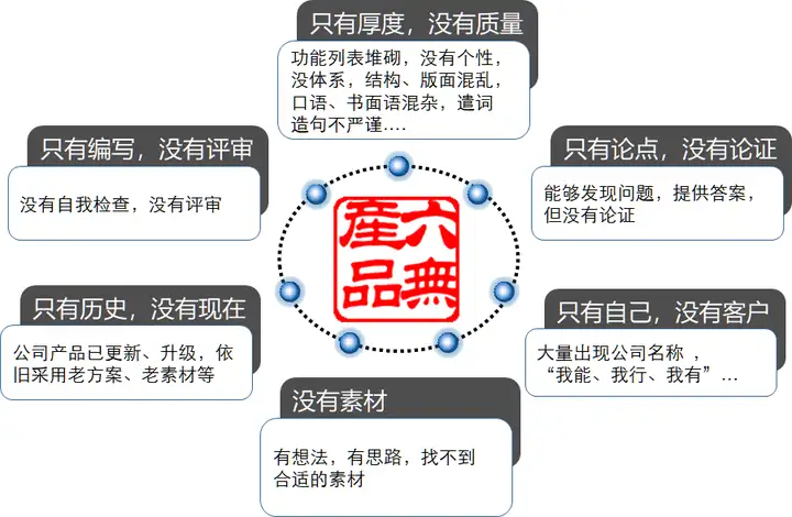 三是谈不出与竞争对手的差异性,客户为什么要选择你。一本方案100页算少,200页算正常,300页也不罕见。如果一个项目有5家对手竞争。客户要拿出把《十万个为什么》都读完了的精神,才可能搞清楚大家都写了些什么东西。想想他会这样干吗?如果他不这样干,那我们应该怎么干?
