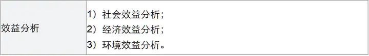 一般包括社会效益分析、经济效益分析、环境效益分析等。